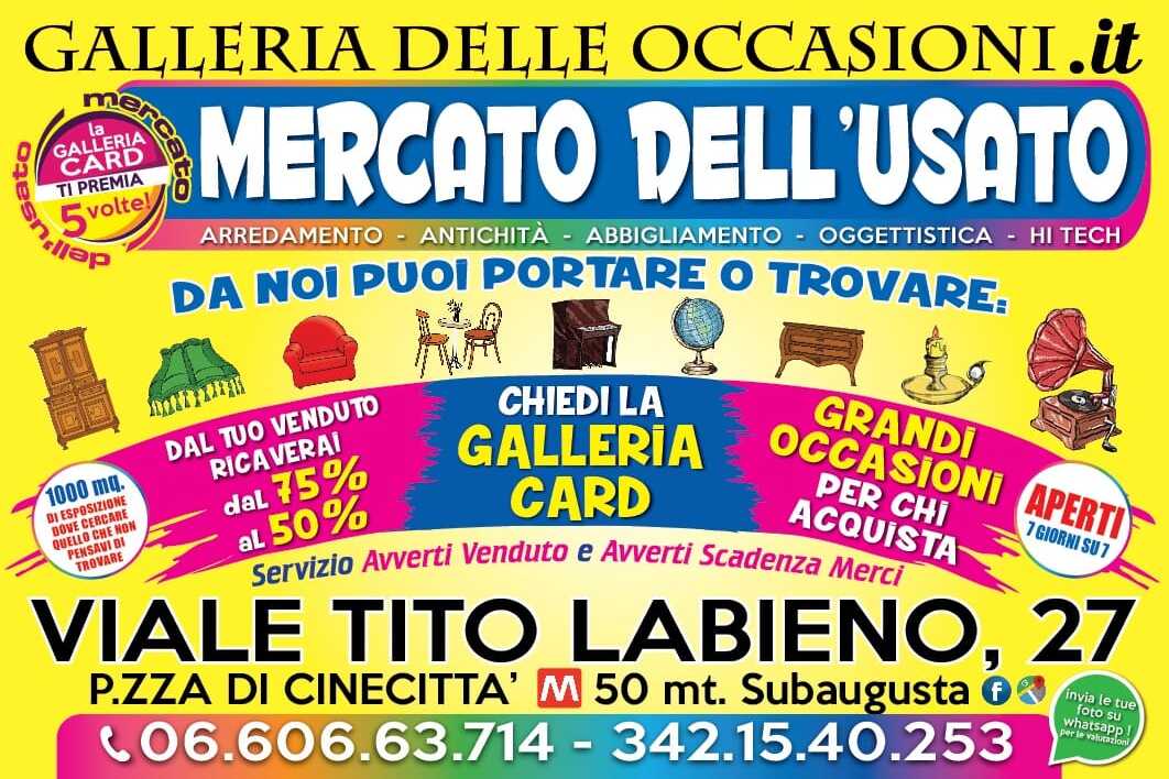 La GALLERIA delle OCCASIONI con sede in Viale Tito Labieno 27 a Roma, a 50 metri dalla fermata della metro Subagusta, può vantare uno spazio espositivo di circa 1000mq dedicato al servizio di compravendita usato e un magazzino completamente organizzato per deposito e custodia di mobili. Tutti gli oggetti usati che troverete presso la sede non solo vi permetteranno di risparmiare parecchio denaro ma saranno in grado di garantirvi ottima qualità e il massimo delle performance.